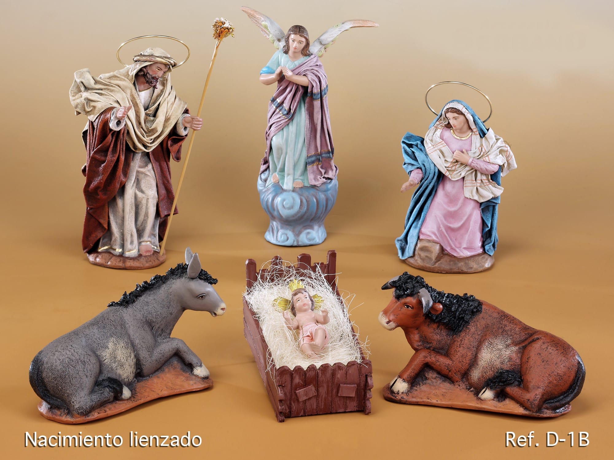 Nacimiento de barro y tela lienzado 21cm