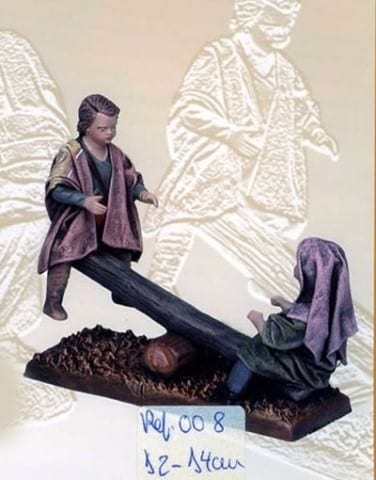 Niños con balancín en barro lienzado