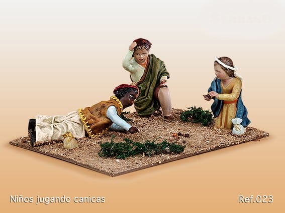 Niños jugando a canicas en barro lienzado