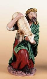 Pastor arrodillado con oveja en barro lienzado