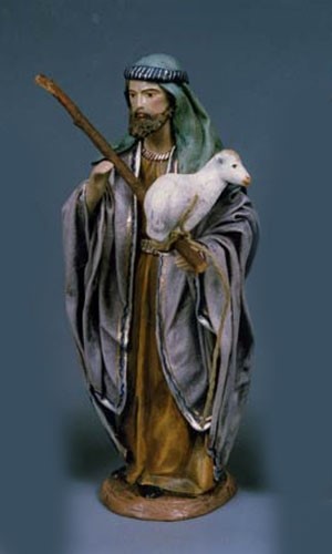 Pastor con borrego en brazos barro lienzado