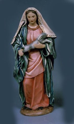 Pastora con conejo en brazos barro lienzado