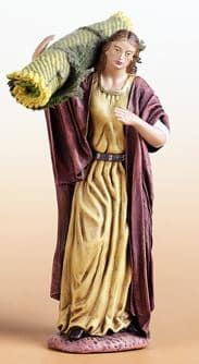 Pastora con rollo de tela encima del hombro