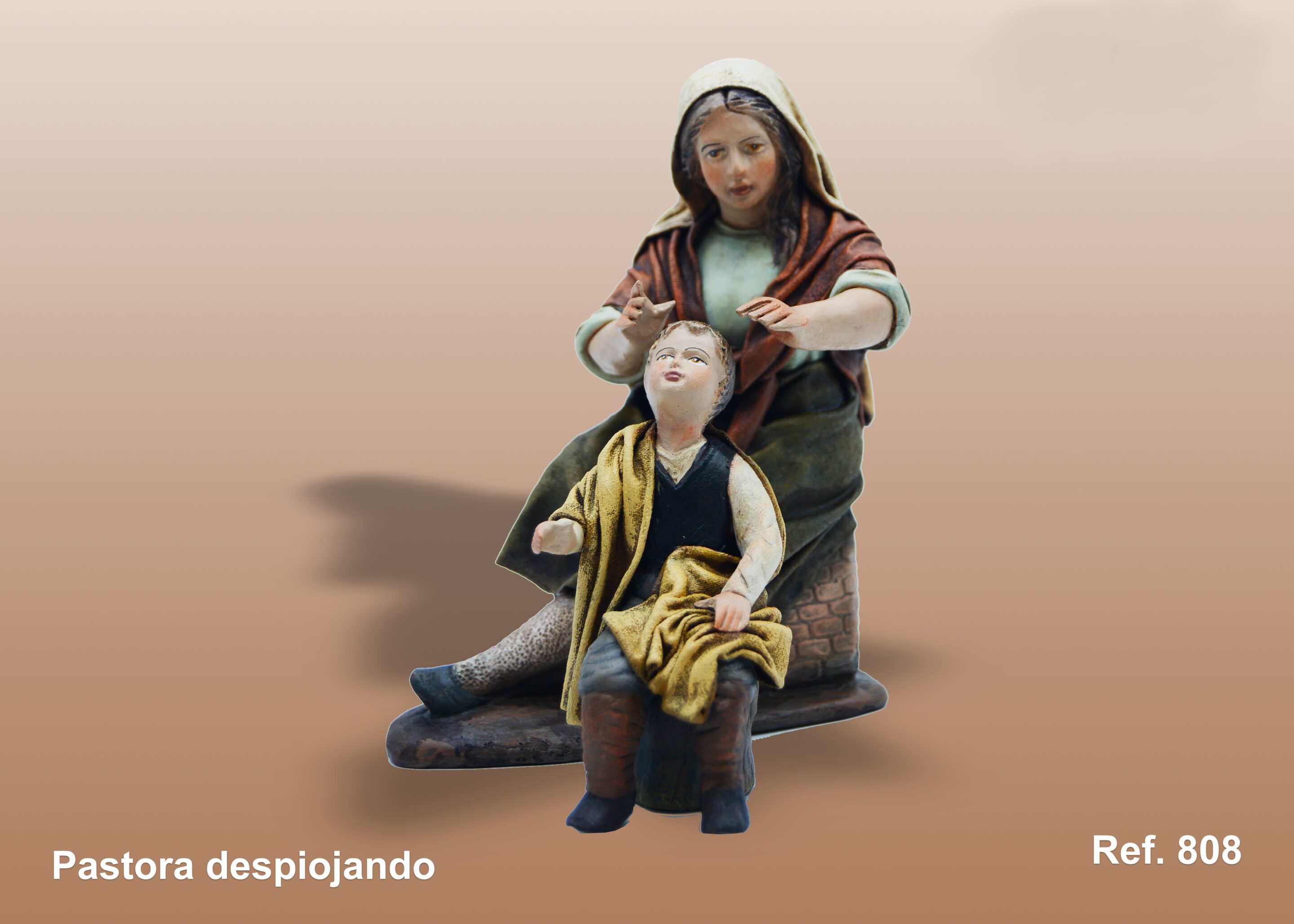 Pastora despiojando a niño en barro lienzado
