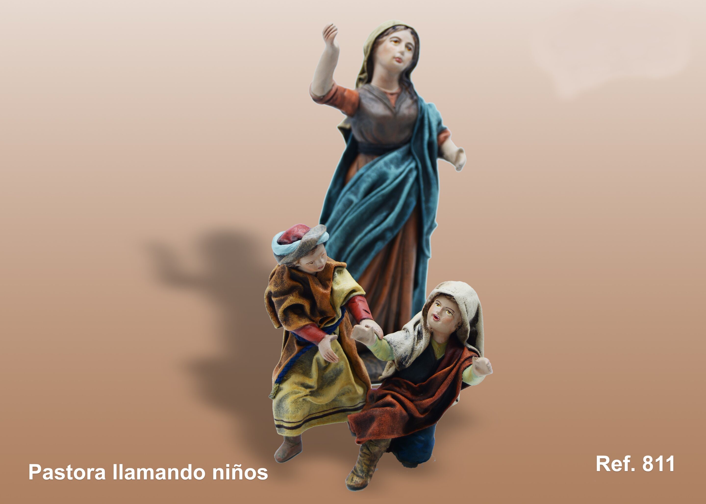 Pastora llamando a niños en barro lienzado
